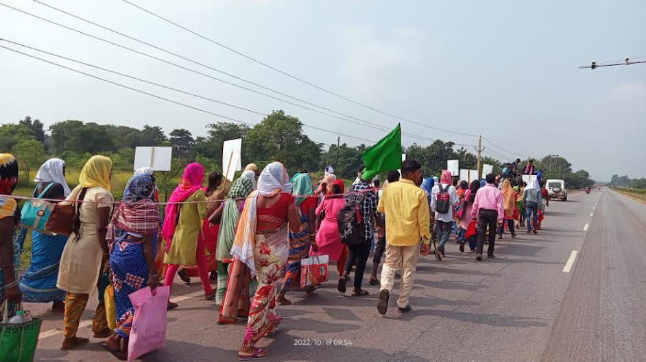 Hundreds of Adivasis undertook a three-day footmarch in Sundargarh from 18 October to 21 October. The foot-march began from Rambahal in Keshramal panchayat of Sundargarh and culminated at the district headquarters after covering a distance of almost 100 kilometres. | Photo courtesy: Special arrangement“As officials posted at various levels of the district administration of Sundargarh, we were only attendees in the public hearing. There was an attendance register at the venue in which we, too, entered our names like other attendees. But, in any case, irrespective of the allegations, it is only a matter of time before the facts come to light because the entire hearing process has been videographed,” said the official on condition of anonymity.
